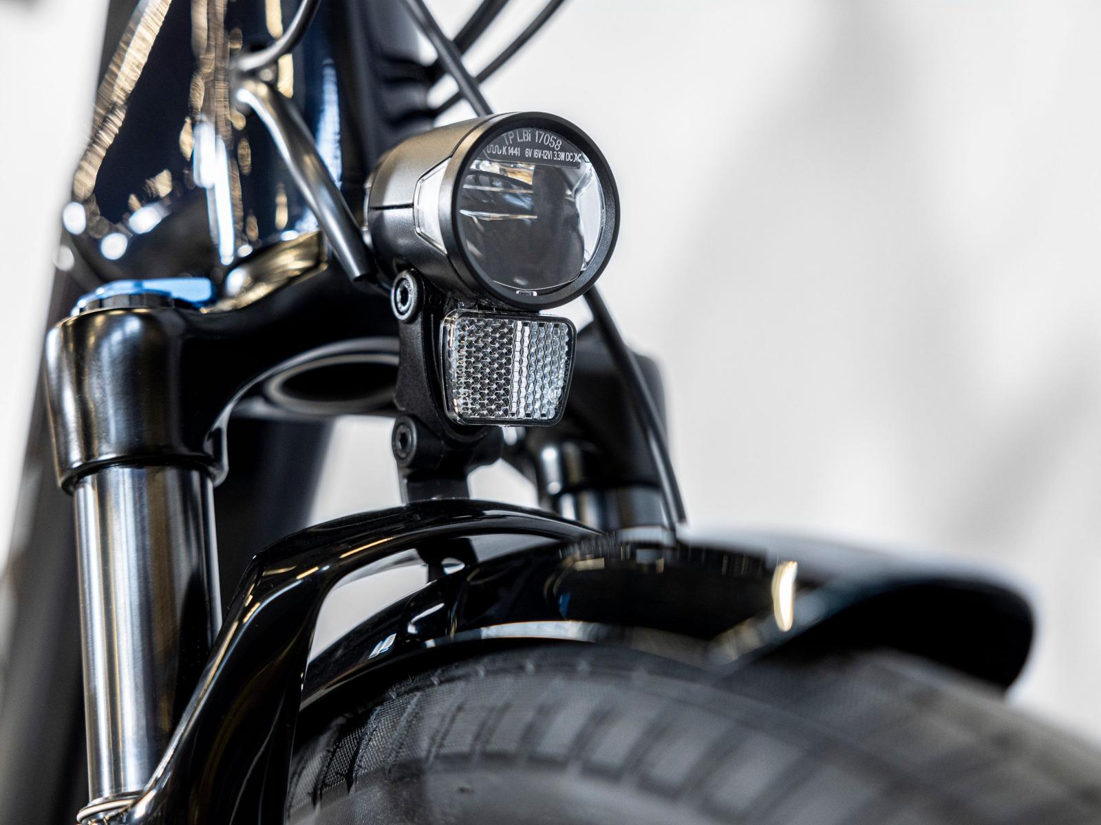 Vorderlicht: Spanninga SOLO f�r E-Bikes // Herrmans H-Black MR8-E, 180 Lumen, 60 Lux, LED, Scheinwerfer