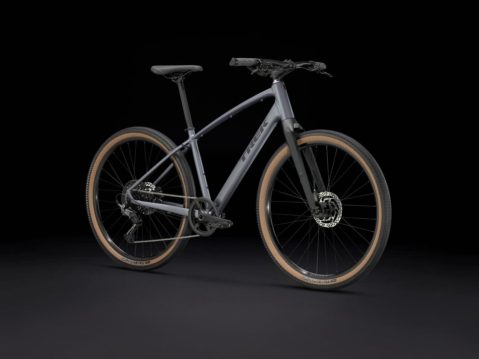 Das Dual Sport 3 ist ein leistungsfähiges, universelles Alltagsrad, das auf der Straße und in etwas ungemütlicherem Terrain gleichermaßen zu Hause ist. Es punktet mit einem leichten Rahmen und einer unkomplizierten Shimano CUES 1x-Schaltung mit breitem Übersetzungsspektrum. Die breiten Bontrager Kovee-Laufräder samt breiten Gravelreifen nehmen Unebenheiten und rauem Terrain den Schrecken und sorgen auf Asphalt, Forstwegen und leichten Trails für einen hohen Fahrkomfort.