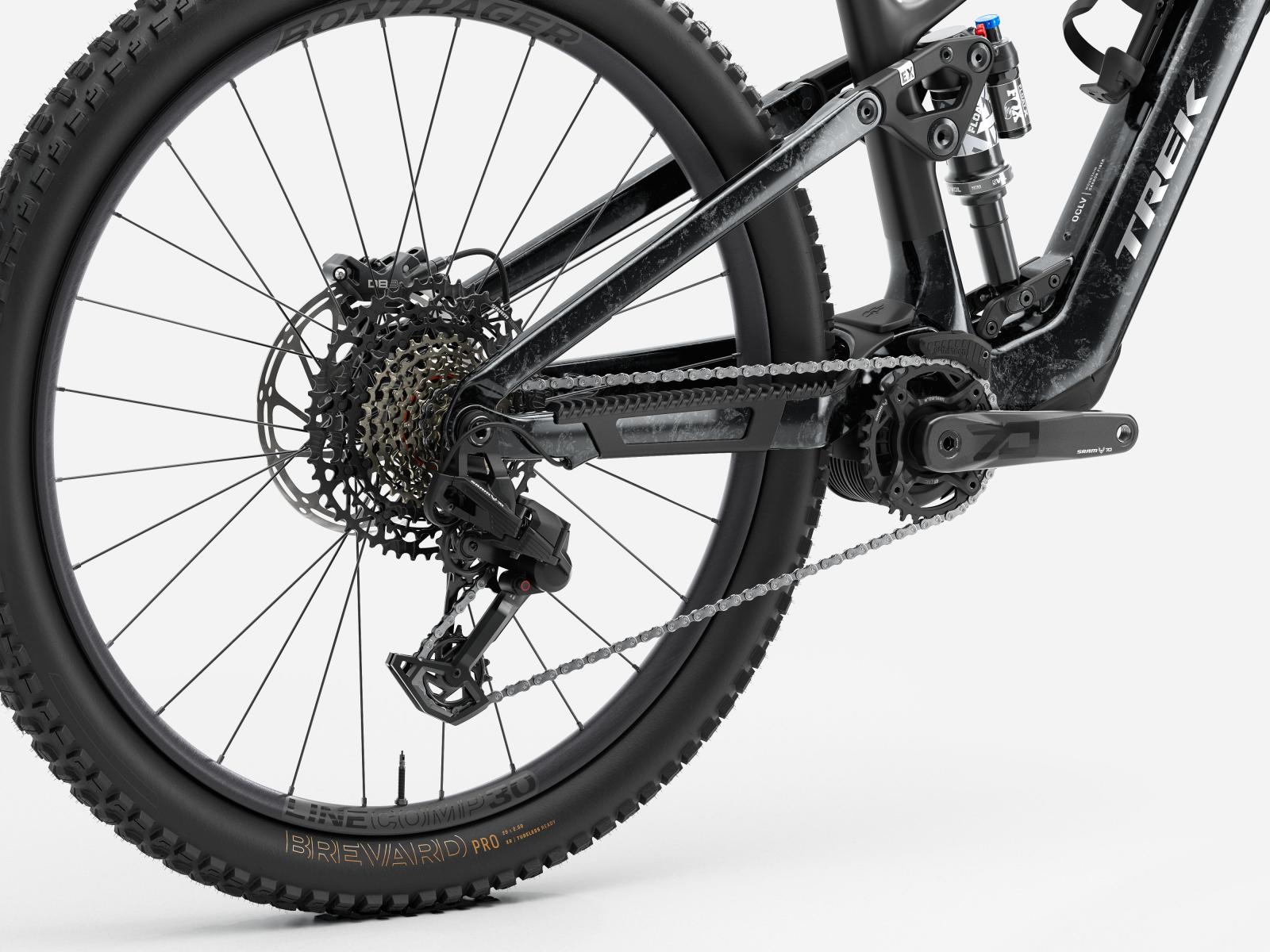 Das Fuel+ EX 9.7 ist ein E-Mountainbike mit Carbonrahmen, das aufgrund seiner Vielseitigkeit für jeden Trail und jeden Fahrstil geeignet ist. Für ausgedehntere Runden und größere Abenteuer ist es mit einem geschmeidigen, leisen TQ HPR60 Motor samt 580-Wh-Akku ausgestattet. Für das außergewöhnlichen Preis-Leistungs-Verhältnis dieses Bikes sorgt die durchdachte Komponentenauswahl, einschließlich FOX Rhythm 36 Federgabel, FOX Performance Float X Hinterbaudämpfer, SRAM Eagle T-Type Schaltung und Bontrager Line Variosattelstütze.