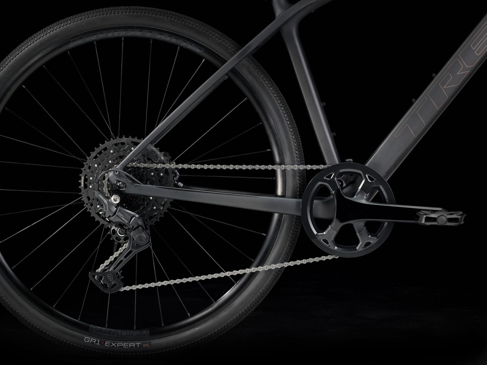 Einen leichtem Rahmen samt Gabel aus 400 Series OCLV Carbon, einen Shimano CUES 10fach-Antrieb mit breitem Übersetzungsbereich, hydraulische Shimano-Scheibenbremsen für eine zuverlässige Allwetterbremsleistung, leichte Tubeless-Ready-Laufräder samt breiten, schnell rollenden Bontrager GR1 Expert Gravelreifen und einen vibrationsdämpfenden Lenker samt ergonomischen Griffen.