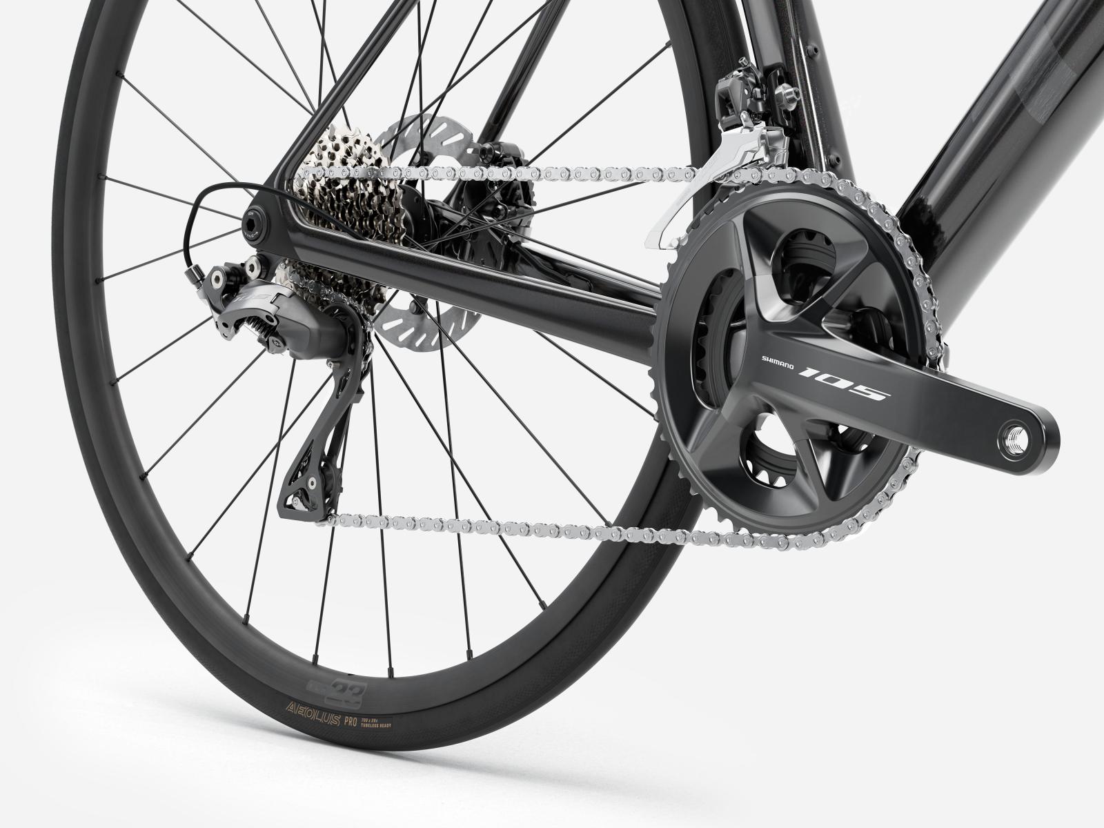 Das Madone SL 5 Gen 8 ist ein leichtes Aero-Rennrad, das Elite-Renntechnologie erschwinglich macht. Es bietet ähnliche aerodynamische Vorteile wie das höherpreisige Madone SLR Gen 8, basiert aber auf einem erschwinglicheren Layup aus 500 Series OCLV Carbon und einem zweiteiligen Cockpit mit interner Zugführung. Die zuverlässige und präzise Shimano 105 Gruppe sowie der Aluminiumlenker und die Aluminiumlaufräder halten den Preis im überschaubaren Rahmen und überzeugen mit einer großartigen Performance.