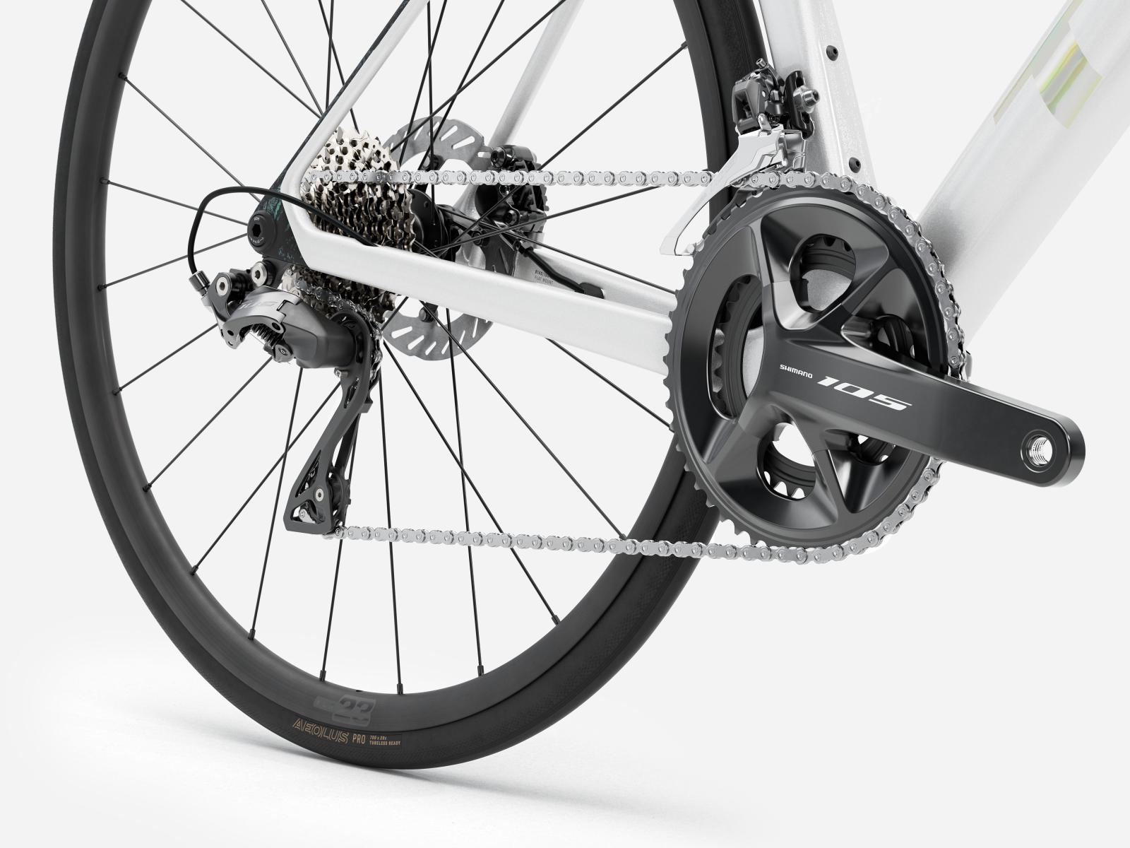 Das Madone SL 5 Gen 8 ist ein leichtes Aero-Rennrad, das Elite-Renntechnologie erschwinglich macht. Es bietet ähnliche aerodynamische Vorteile wie das höherpreisige Madone SLR Gen 8, basiert aber auf einem erschwinglicheren Layup aus 500 Series OCLV Carbon und einem zweiteiligen Cockpit mit interner Zugführung. Die zuverlässige und präzise Shimano 105 Gruppe sowie der Aluminiumlenker und die Aluminiumlaufräder halten den Preis im überschaubaren Rahmen und überzeugen mit einer großartigen Performance.