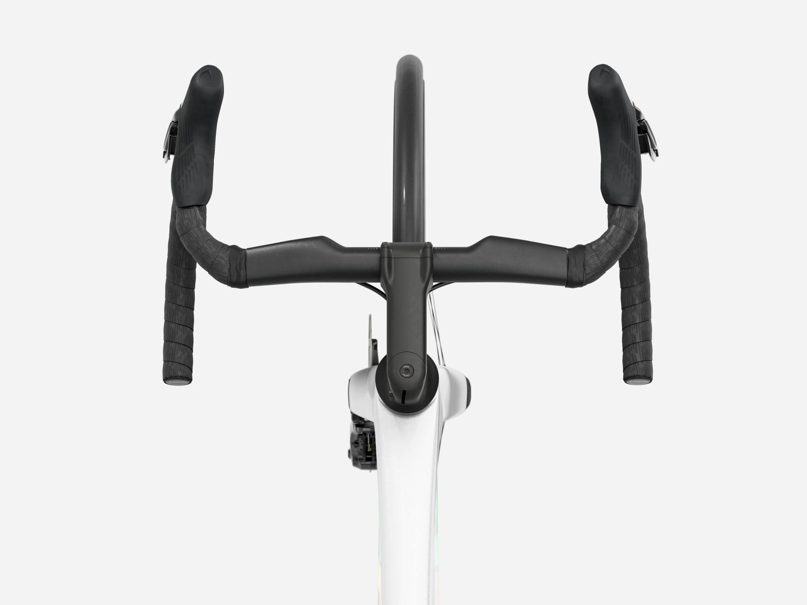 Der im Vergleich zum Unterlenker schmalere Oberlenker des Madone Gen 8 ermöglicht eine auf Aerodynamik oder Power optimierte Positionierung auf dem Bike. Und dank zweiteiligem Lenker/Vorbau-Design lässt sich die Passform schnell und einfach anpassen.