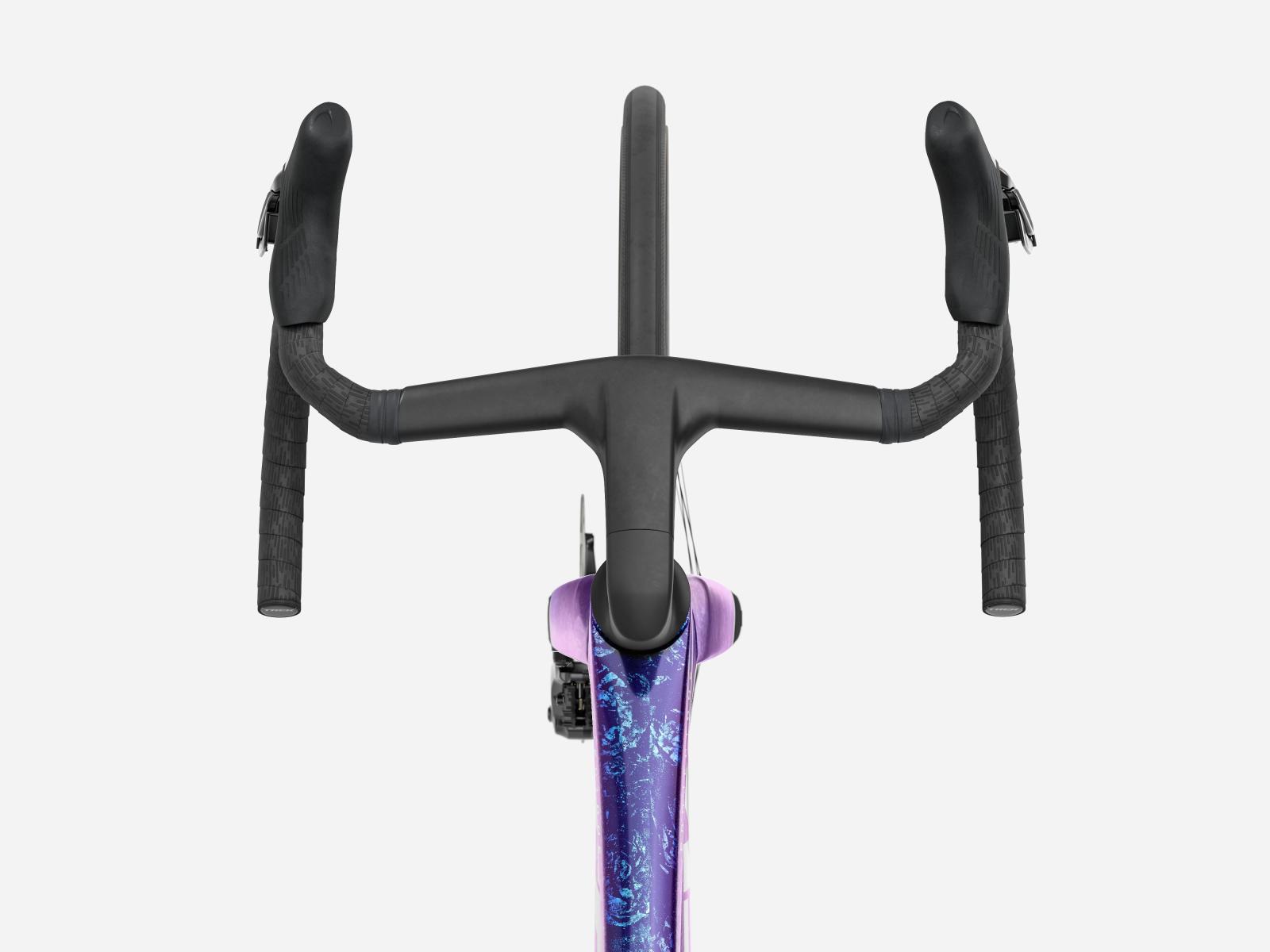 Die neue einteilige Lenker/Vorbau-Einheit ist leichter, aerodynamischer und ergonomischer als die Vorg�ngerversion. Dar�ber hinaus erm�glicht der im Vergleich zum Unterlenker 3�cm schmalere Oberlenker die Anpassung der Positionierung auf dem Bike, um entweder in der Oberlenkerposition von einer besseren Aerodynamik zu profitieren oder im Unterlenker mehr Kraft aufs Pedal zu bringen.