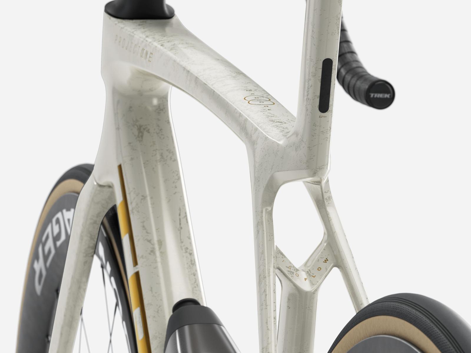 Einen unglaublich leichten, aerodynamisch optimierten Rahmen aus unserem besten 900 Series OCLV Carbon samt IsoFlow-Komforttechnologie und Watt-sparenden RSL Aero Trinkflaschen und Flaschenhaltern. Einen blitzschnell schaltenden Shimano Ultegra Di2 2x12-Antrieb, der sich individuell programmieren l�sst, w�hrend das verbaute, weit verbreitete Universalschaltauge (UDH) die Ersatzteilbeschaffung erleichtert. Abgerundet wird die Ausstattung von schlauchlosen Bontrager Aeolus Pro 51 Carbonlaufr�dern und einer einteiligen Trek Aero RSL Lenker/Vorbau-Einheit.