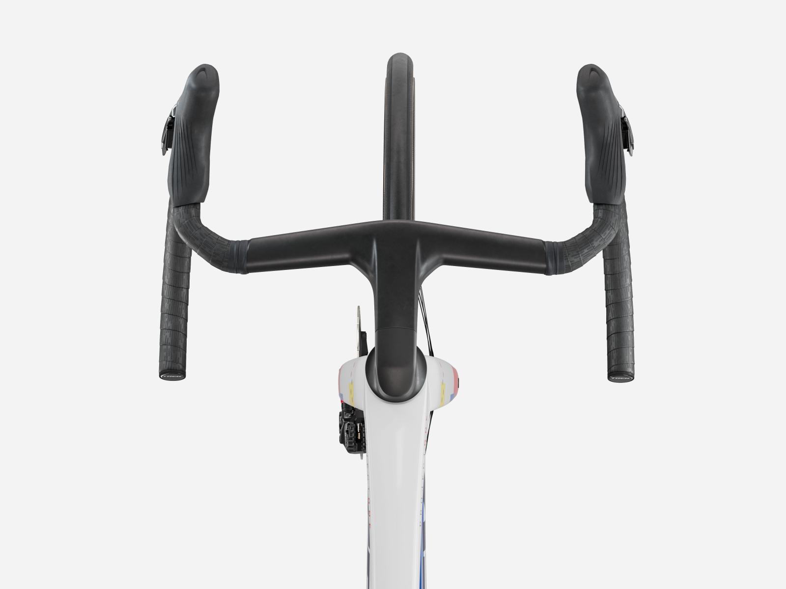 Die neue einteilige Lenker/Vorbau-Einheit ist leichter, aerodynamischer und ergonomischer als die Vorg�ngerversion. Dar�ber hinaus erm�glicht der im Vergleich zum Unterlenker 3�cm schmalere Oberlenker die Anpassung der Positionierung auf dem Bike, um entweder in der Oberlenkerposition von einer besseren Aerodynamik zu profitieren oder im Unterlenker mehr Kraft aufs Pedal zu bringen.