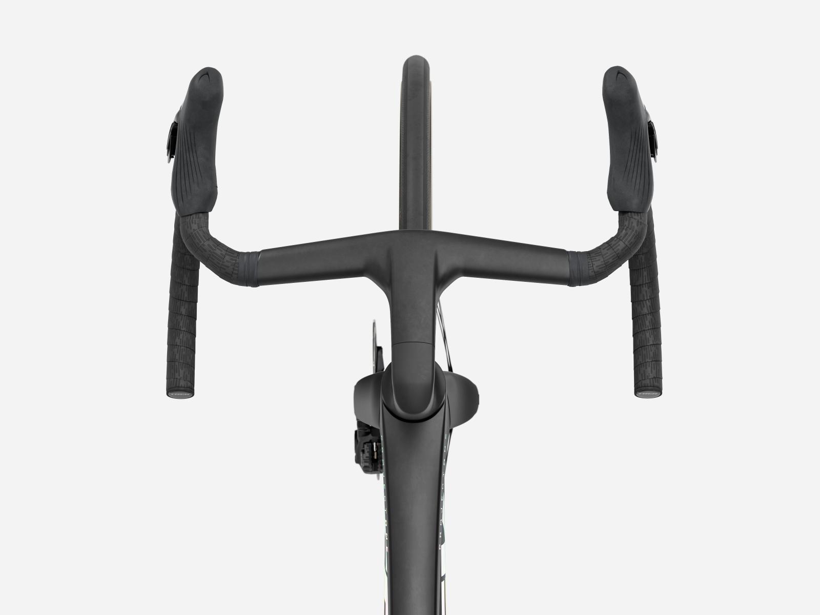 Lenker: Trek Aero RSL Road integrierte Lenker/Vorbau-Einheit, OCLV Carbon, Race�Fit, 80�mm Reach, 124�mm Drop, 35�cm Oberlenkerbreite, 38�cm Unterlenkerbreite, 80�mm Vorbaul�nge