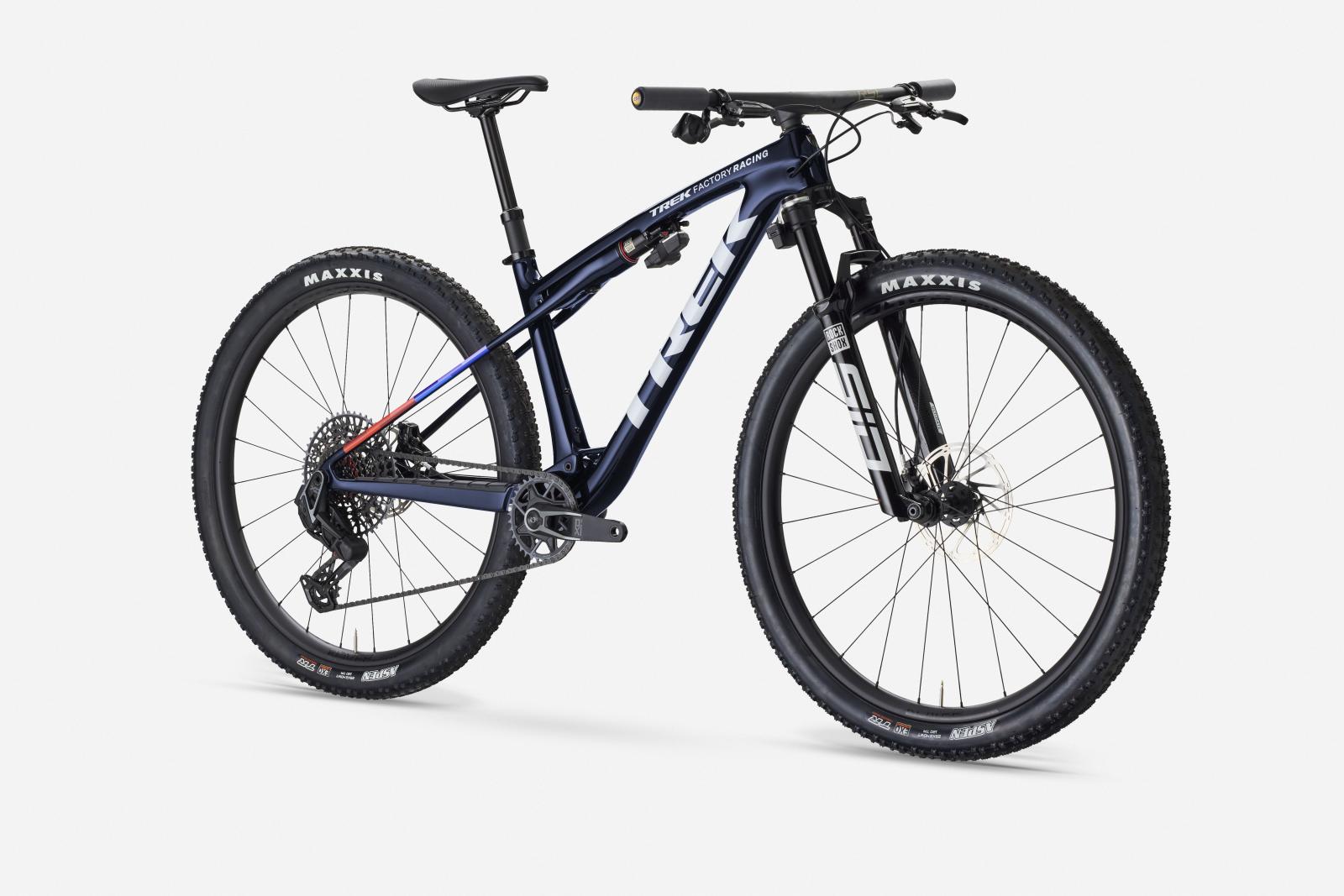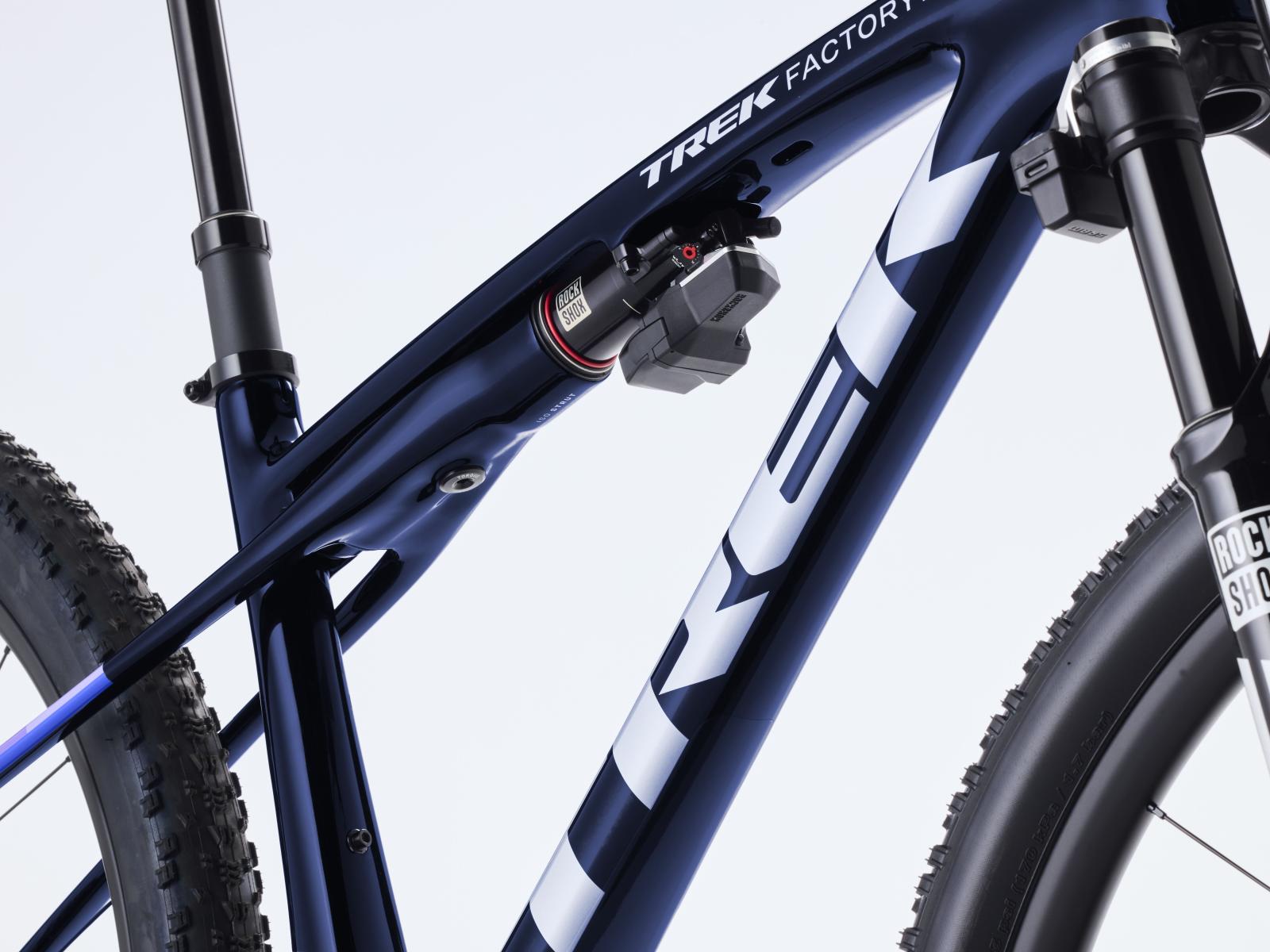 Einen federleichten Rahmen aus hochmoduligem SLR OCLV Mountain Carbon mit moderner XC-Geometrie. Au�erdem bekommst du eine RockShox SID SL Ultimate 110-mm-Federgabel mit DebonAir Federung und Charger Race Day D�mpfung und einen RockShox SIDLuxe IsoStrut 80-mm-Hinterbaud�mpfer � nat�rlich komplett mit Flight Attendant Technologie von RockShox. Eine ultraleichte, komplett drahtlose elektronische SRAM X0 AXS 12fach-Transmission, Bontrager Kovee RSL Carbonlaufr�der, eine integrierte Bontrager RSL Lenker/Vorbau-Einheit aus Carbon, eine drahtlose RockShox Reverb AXS Variosattelst�tze und hydraulische SRAM Motive Silver 4-Kolben-Scheib