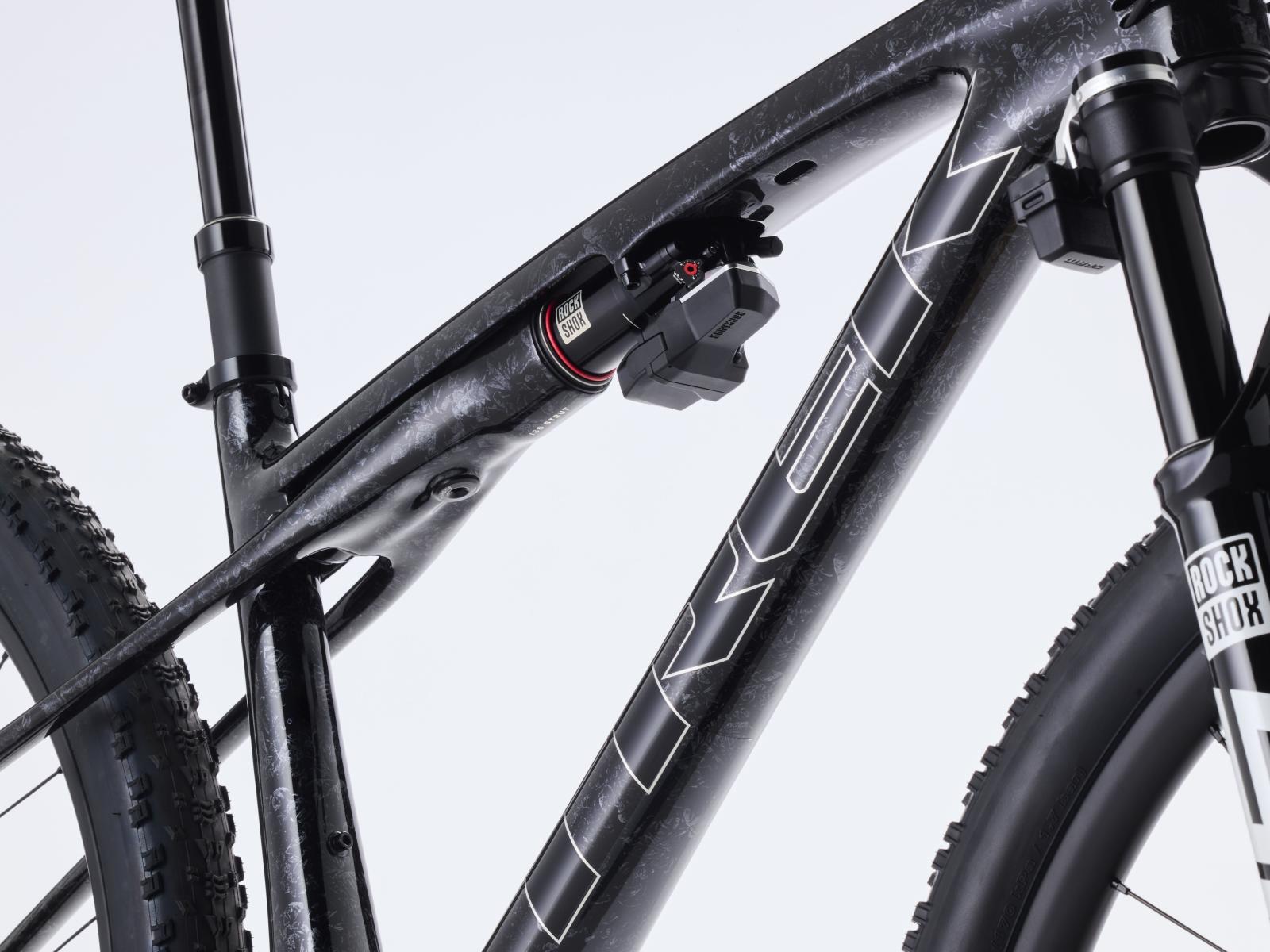 Einen federleichten Rahmen aus hochmoduligem SLR OCLV Mountain Carbon mit moderner XC-Geometrie. Au�erdem bekommst du eine RockShox SID SL Ultimate 110-mm-Federgabel mit DebonAir Federung und Charger Race Day D�mpfung und einen RockShox SIDLuxe IsoStrut 80-mm-Hinterbaud�mpfer � nat�rlich komplett mit Flight Attendant Technologie von RockShox. Eine ultraleichte, komplett drahtlose elektronische SRAM X0 AXS 12fach-Transmission, Bontrager Kovee RSL Carbonlaufr�der, eine integrierte Bontrager RSL Lenker/Vorbau-Einheit aus Carbon, eine drahtlose RockShox Reverb AXS Variosattelst�tze und hydraulische SRAM Motive Silver 4-Kolben-Scheib