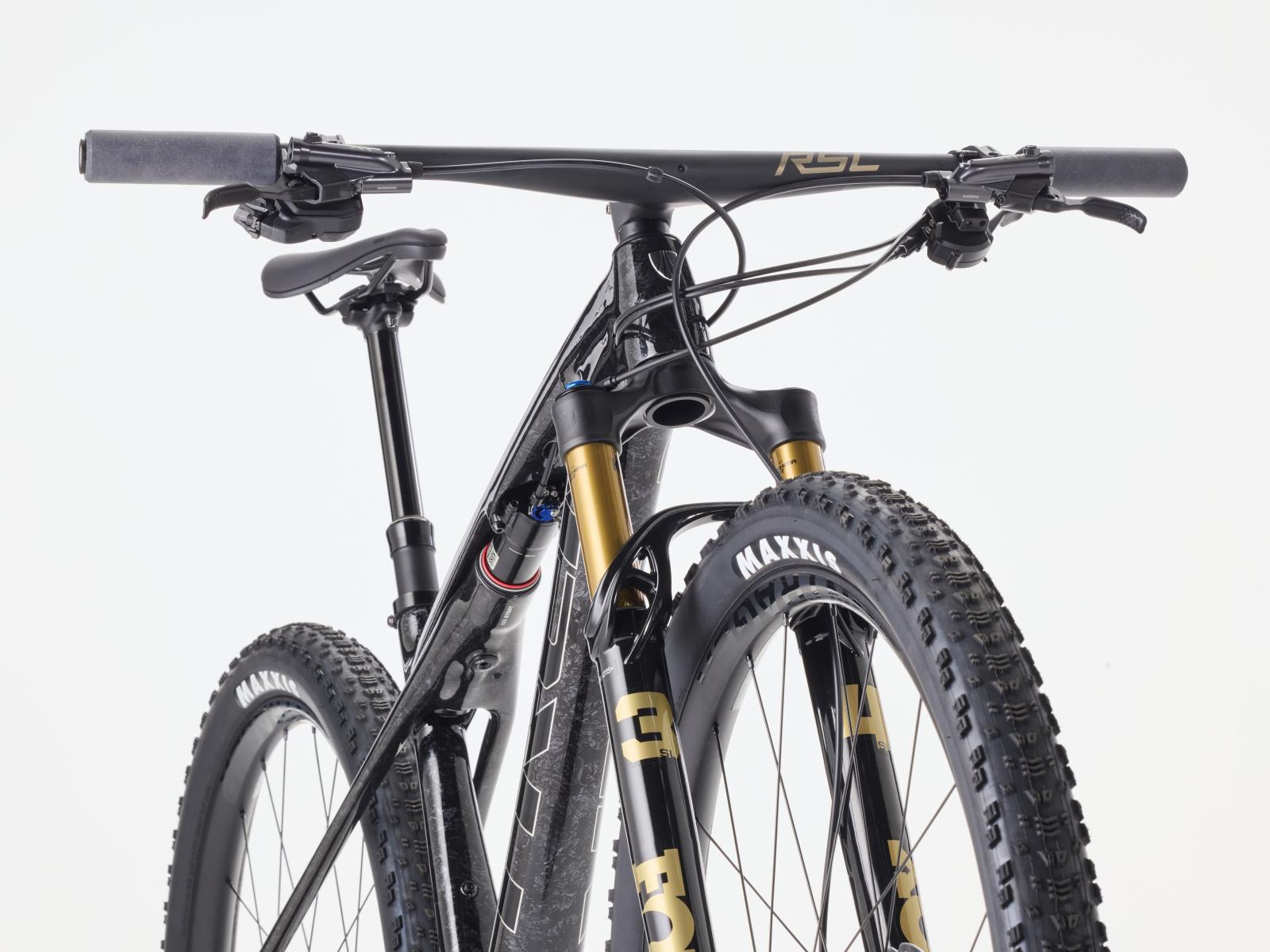 Einen federleichten Rahmen aus hochmoduligem SLR OCLV Mountain Carbon mit moderner XC-Geometrie. Dazu gibts eine FOX Factory 34 SL Step-Cast 110-mm-Federgabel mit Float EVOL Luftfederung, GRIP SL 2-Positionen-D�mpfung und Dual-Remote-Lockout und einen RockShox SIDLuxe IsoStrut-D�mpfer mit 80 mm Federweg. Shimanos brandneuer drahtloser XT Di2 12fach-Antrieb, Bontrager Kovee Elite 30 Carbonlaufr�der, eine integrierte Bontrager RSL Lenker/Vorbau-Einheit aus Carbon, eine Bontrager Line Variosattelst�tze und hydraulische Shimano XT M8200 Scheibenbremsen runden das Ausstattungspaket ab.