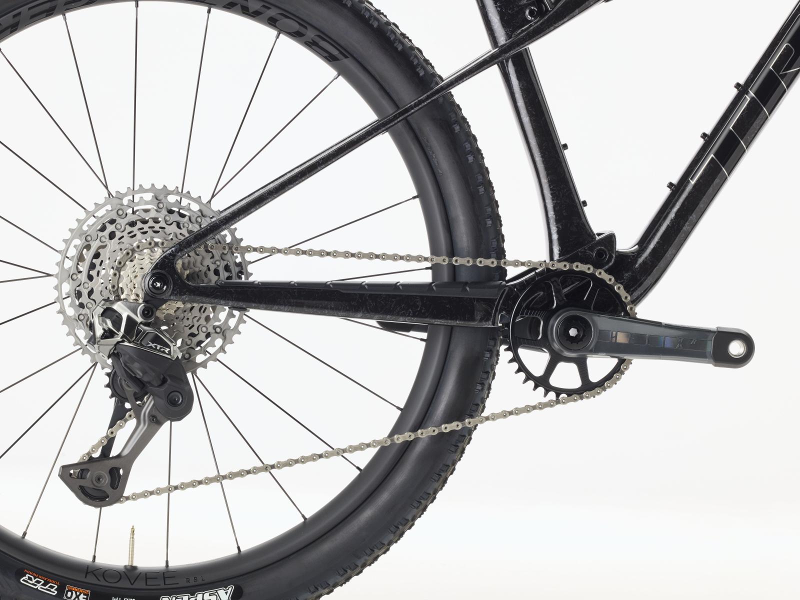 Einen federleichten Rahmen aus High-Modulus SLR OCLV Mountain Carbon mit moderner XC-Geometrie. Zudem eine Fox Factory 34 SL Step-Cast 110-mm-Federgabel mit Float EVOL Luftfederung, GRIP SL 2-Positionen-D�mpfung und Dual Remote-Lockout sowie einen RockShox SIDLuxe IsoStrut-D�mpfer mit 80 mm Federweg. Ein brandneuer drahtloser Shimano XTR Di2 12fach-Antrieb, Bontrager Kovee RSL Carbonlaufr�der, eine integrierte Bontrager RSL Lenker/Vorbau-Einheit aus Carbon, eine FOX Transfer SL Variosattelst�tze und hydraulische Shimano XTR M9200 Scheibenbremsen runden das Ausstattungspaket ab.