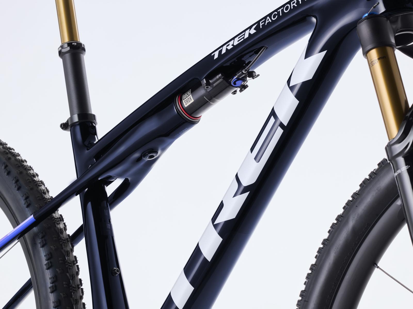 Einen federleichten Rahmen aus High-Modulus SLR OCLV Mountain Carbon mit moderner XC-Geometrie. Zudem eine Fox Factory 34 SL Step-Cast 110-mm-Federgabel mit Float EVOL Luftfederung, GRIP SL 2-Positionen-D�mpfung und Dual Remote-Lockout sowie einen RockShox SIDLuxe IsoStrut-D�mpfer mit 80 mm Federweg. Ein brandneuer drahtloser Shimano XTR Di2 12fach-Antrieb, Bontrager Kovee RSL Carbonlaufr�der, eine integrierte Bontrager RSL Lenker/Vorbau-Einheit aus Carbon, eine FOX Transfer SL Variosattelst�tze und hydraulische Shimano XTR M9200 Scheibenbremsen runden das Ausstattungspaket ab.