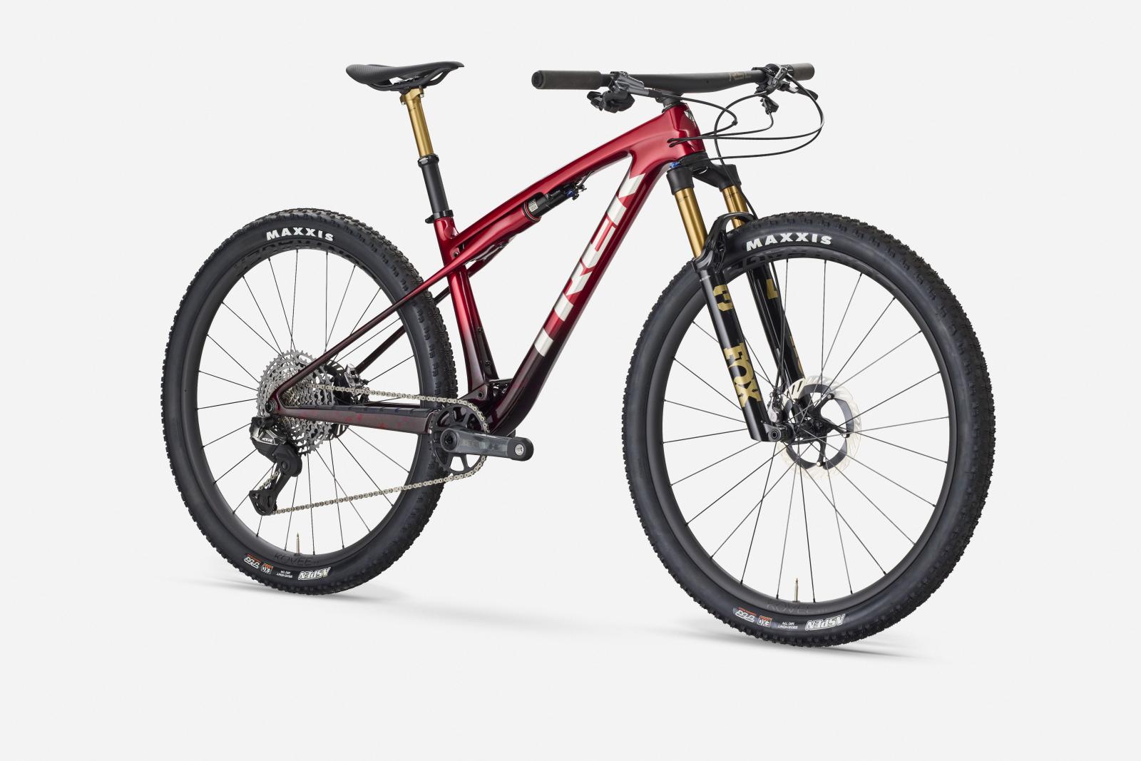 Einen federleichten Rahmen aus High-Modulus SLR OCLV Mountain Carbon mit moderner XC-Geometrie. Zudem eine Fox Factory 34 SL Step-Cast 110-mm-Federgabel mit Float EVOL Luftfederung, GRIP SL 2-Positionen-D�mpfung und Dual Remote-Lockout sowie einen RockShox SIDLuxe IsoStrut-D�mpfer mit 80 mm Federweg. Ein brandneuer drahtloser Shimano XTR Di2 12fach-Antrieb, Bontrager Kovee RSL Carbonlaufr�der, eine integrierte Bontrager RSL Lenker/Vorbau-Einheit aus Carbon, eine FOX Transfer SL Variosattelst�tze und hydraulische Shimano XTR M9200 Scheibenbremsen runden das Ausstattungspaket ab.