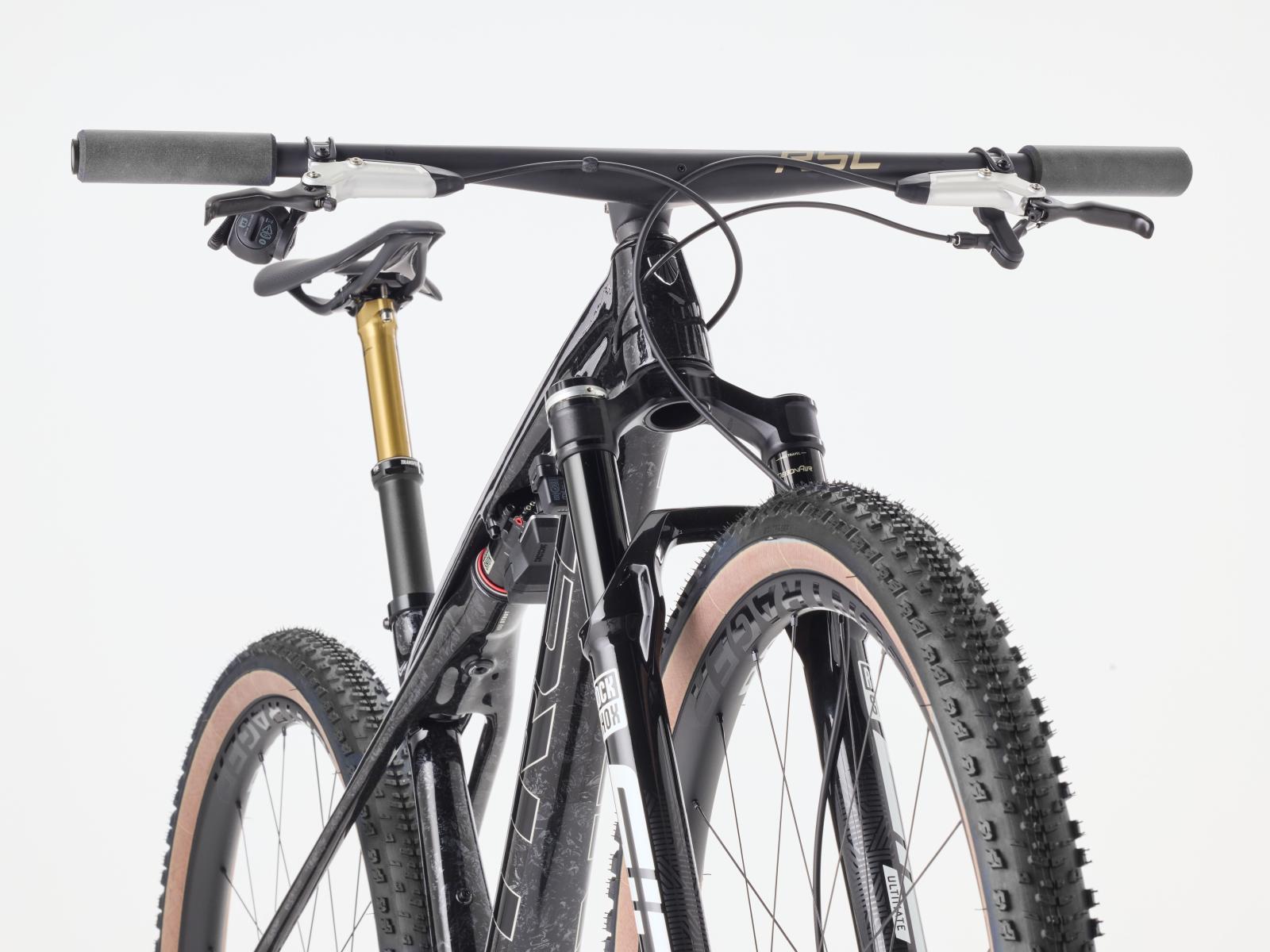Einen federleichten Rahmen aus hochmoduligem SLR OCLV Mountain Carbon mit moderner XC-Geometrie. Au�erdem bekommst du eine RockShox SID SL Ultimate 110-mm-Federgabel mit DebonAir-Federung und Charger Race Day D�mpfung und einen RockShox SIDLuxe IsoStrut 80-mm-Hinterbaud�mpfer � nat�rlich komplett mit Remote-Lockout. Eine ultraleichte, komplett drahtlose elektronische SRAM XX SL AXS 12fach-Transmission, Bontrager Kovee RSL Carbonlaufr�der, eine integrierte Bontrager RSL Lenker/Vorbau-Einheit aus Carbon, eine FOX Transfer SL Variosattelst�tze und hydraulische SRAM Motive Ultimate 4-Kolben-Scheibenbremsen runden das Ausstattungspak