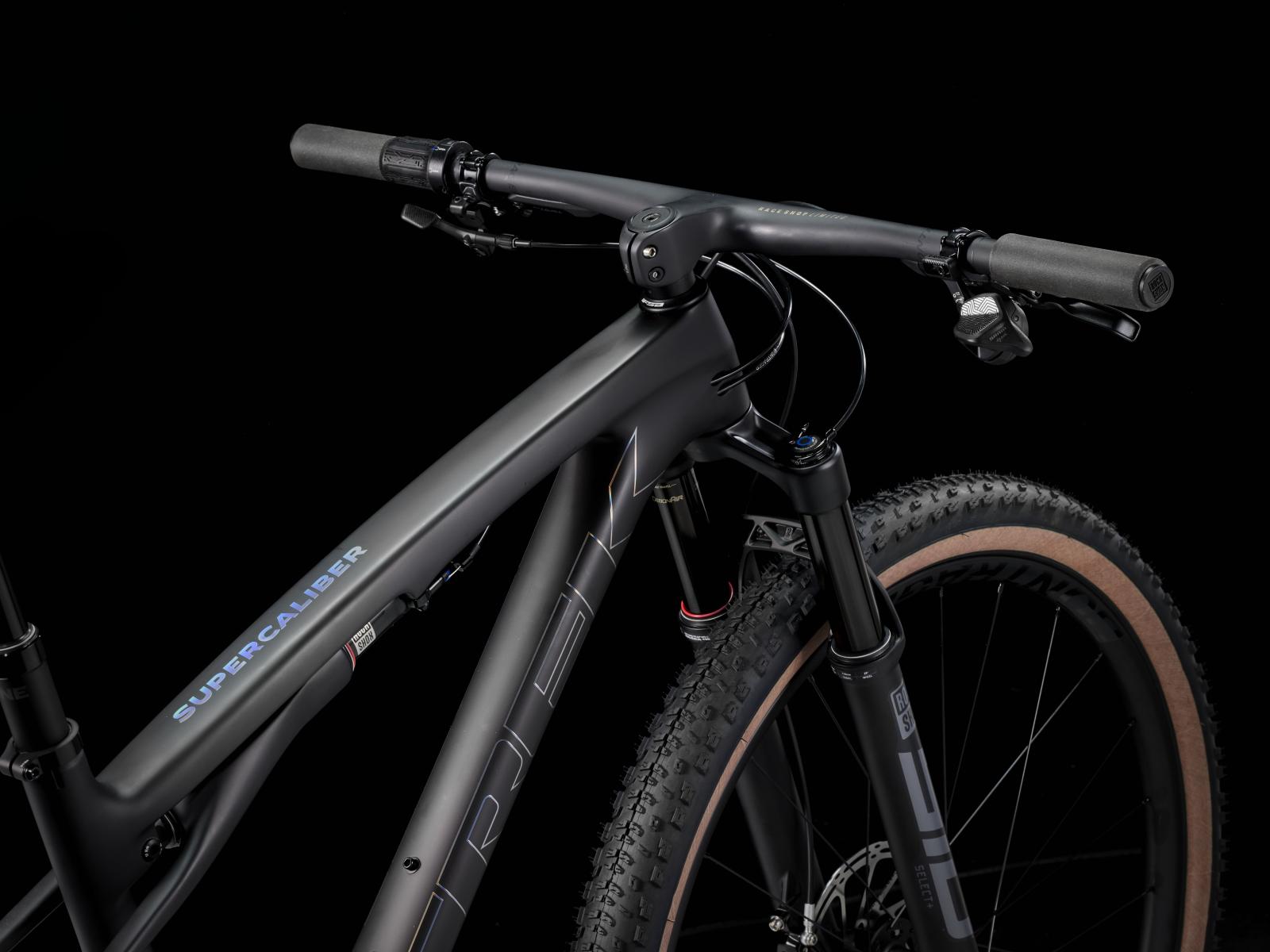 Einen federleichten Rahmen aus hochmoduligem SLR OCLV Mountain Carbon mit moderner XC-Geometrie. Außerdem bekommst du eine RockShox SID Select+ 110-mm-Federgabel mit DebonAir Federung und Charger Race Day Dämpfung und einen RockShox SIDLuxe IsoStrut 80-mm-Hinterbaudämpfer – natürlich komplett mit Remote-Lockout. Eine komplett drahtlose elektronische SRAM X0 AXS 12fach-Transmission, Bontrager Kovee Elite 23 Carbonlaufräder, eine integrierte Bontrager RSL Lenker/Vorbau-Einheit aus Carbon, eine Bontrager Line Variosattelstütze und hydraulische SRAM Level Silver 4-Kolben-Scheibenbremsen.
