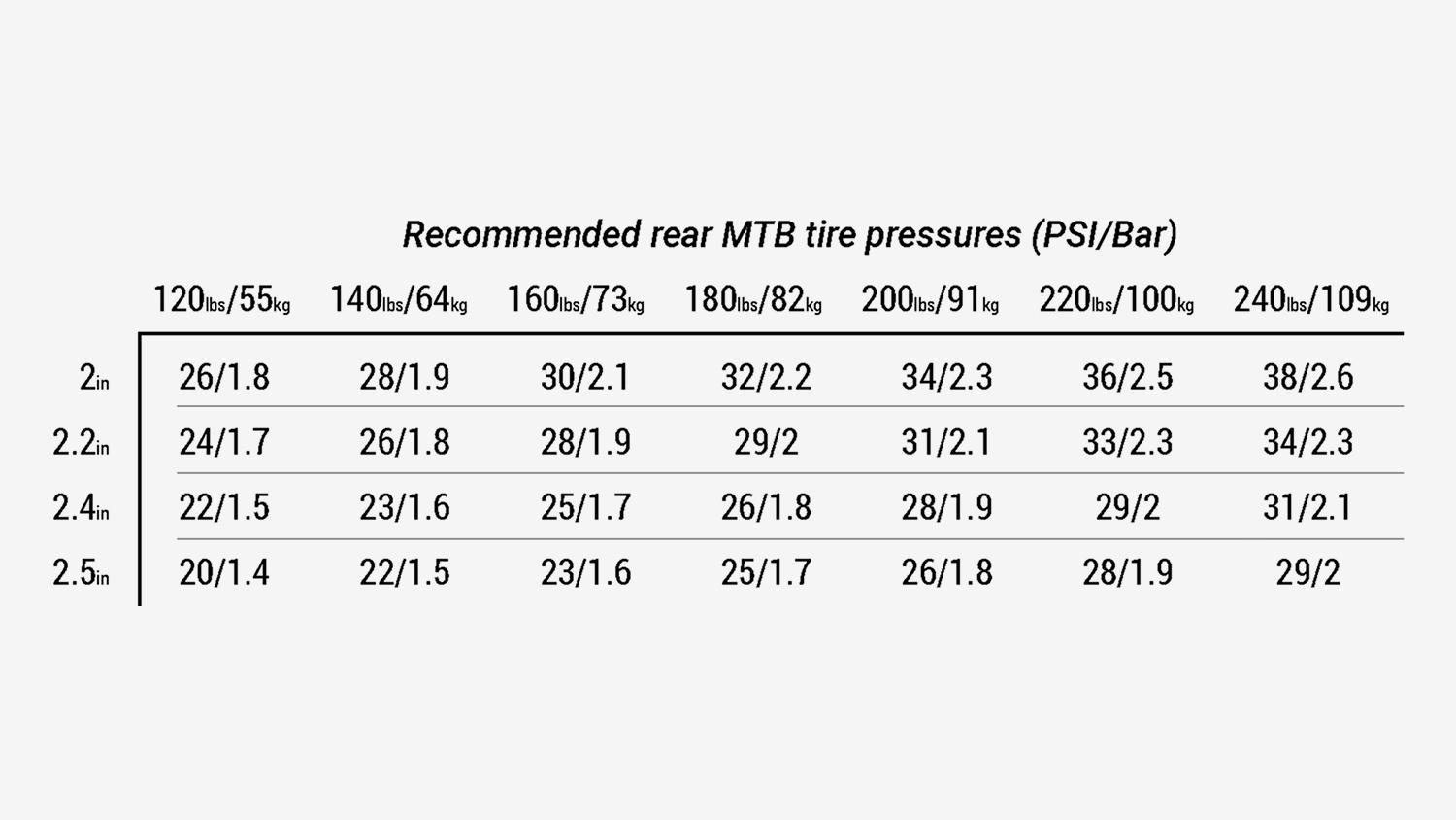 Druckempfehlungen für Mountainbike-Reifen