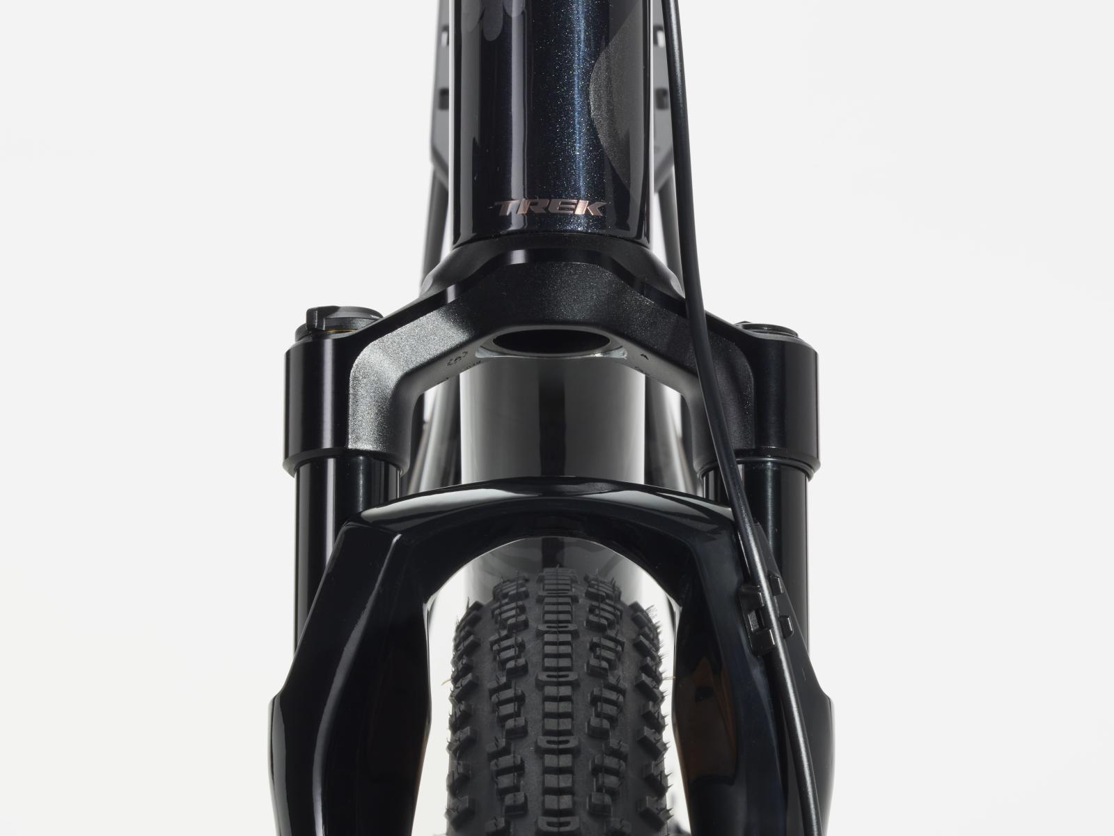 Das CheckOUT SL 5 ein abenteuertaugliches Full-Suspension-Gravelbike für epische Touren durchs Hinterland. Der RockShox SIDluxe IsoStrut Dämpfer im Carbonrahmen bietet 55 mm Federweg am Hinterbau, während eine RockShox Rudy XL 60-mm-Federgabel holprige Straßen und Trails glattbügelt. Mit Bontrager Paradigm Comp Laufrädern, Shimano GRX 12fach-Schaltung und TranzX Variosattelstütze ist es bereits ab Werk auf Abenteuer getrimmt.