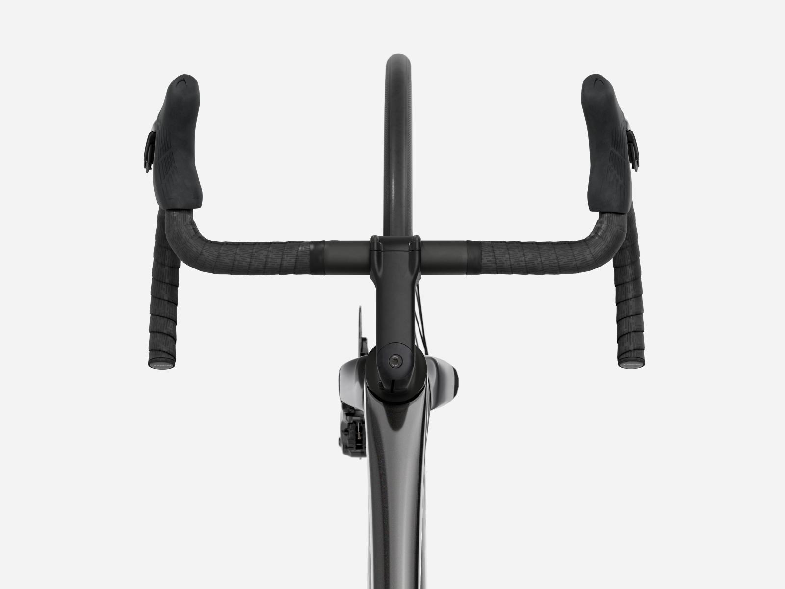 Der im Vergleich zum Unterlenker schmalere Oberlenker des Madone Gen 8 ermöglicht eine auf Aerodynamik oder Power optimierte Positionierung auf dem Bike. Und dank zweiteiligem Lenker/Vorbau-Design lässt sich die Passform schnell und einfach anpassen.