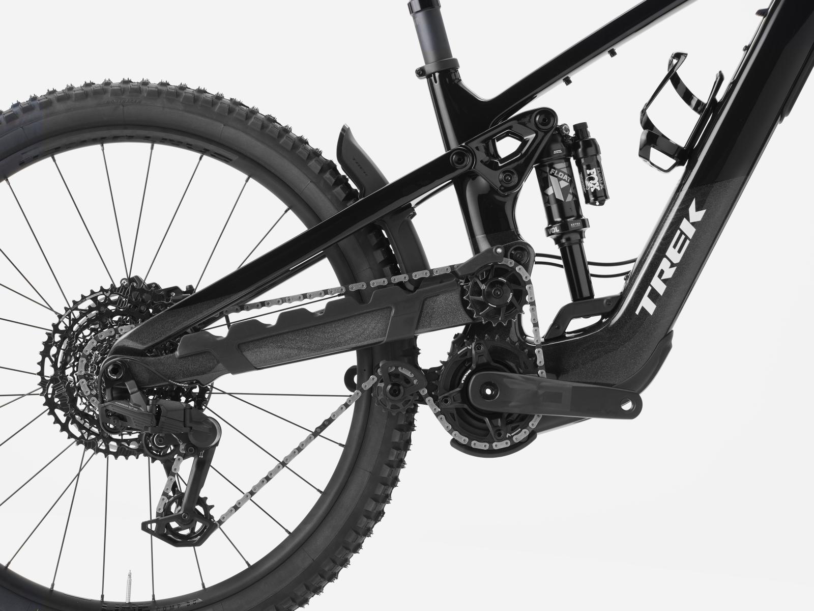 Rahmen: OCLV Mountain Carbon, herausnehmbarer Akku, hoher Hauptdrehpunkt, Umlenkrolle, Steuersatz mit verstellbarem Lenkwinkel, verstellbare Progression, integrierter Rahmenschutz, interne Zugführung, Alu-Umlenkhebel, Aufnahme für obere Kettenführung, 55 mm Kettenlinie, ABP, UDH, 148 x 12 mm Steckach