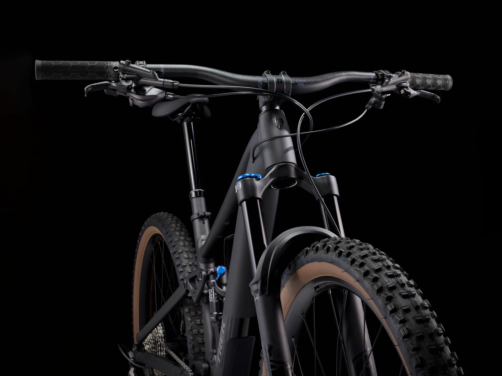 Einen Rahmen aus Alpha Platinum Aluminium mit vierfach verstellbarem Mino Link an der unteren Dämpferaufnahme zur Feinanpassung der Rahmengeometrie und des Hebelverhältnisses des Fahrwerks. Eine FOX Rhythm 34 Gabel mit 130 mm Federweg, Float EVOL Luftfeder und GRIP Dämpfung sowie einen FOX Performance Float Hinterbaudämpfer mit 120 mm Federweg und 3-Positionen-Dämpfung. Abgerundet wird die Ausstattung von einer Shimano XT/SLX 12fach-Schaltung, hydraulischen Scheibenbremsen, einer Bontrager Line Variostütze und Bontrager Line Comp 30 Tubeless-Ready-Laufrädern.